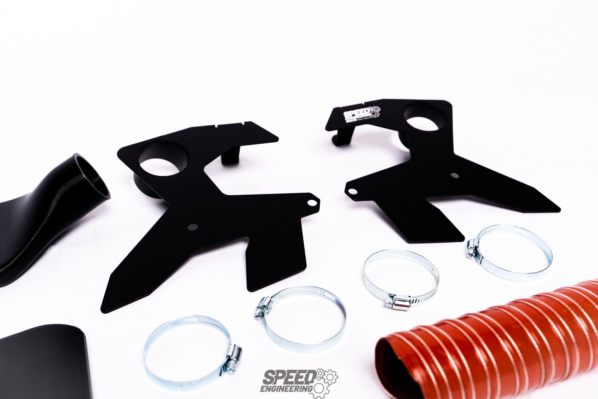 Wlot kanału powietrznego: Aby powietrze mogło przedostać się do układu chłodzenia hamulców, niezbędny jest odpowiedni wlot. Niektóre modele BMW E46 AG posiadają już fabrycznie kanały wlotowe w przednim zderzaku, ale kończą się one pośrodku nadkola. Aby zapobiec niekontrolowanemu zawirowaniu powietrza w nadkolu, opracowaliśmy przedłużenie kanału powietrznego, które można zamontować przy minimalnym wysiłku. To przedłużenie kieruje powietrze wokół koła i łączy kanał powietrzny z naszym wylotem za pomocą węża o długości 40 cm (z każdej strony). Wylot kanału powietrznego: Również w tym przypadku tarcza hamulcowa musi być chłodzona powietrzem tak centralnie, jak to możliwe. Tarcza hamulcowa w modelu E46 nie ma zbyt dużej piasty. Dlatego konwencjonalne rozwiązanie z płytą nośną skutkowałoby nierównomiernym chłodzeniem wewnętrznej powierzchni tarczy ciernej. Aby jednak wykorzystać efekt turbiny tarczy hamulcowej, opracowaliśmy układ chłodzenia hamulców, który jest montowany na wahaczu i kieruje przepływ powietrza do środka tarczy, niezależnie od położenia koła. Jest on łatwy w montażu za pomocą istniejących sworzni montażowych i nie wymaga żadnych trwałych modyfikacji w pojeździe.Zawartość przesyłki: 1x Wlot powietrza do przedniej osi, lewy;