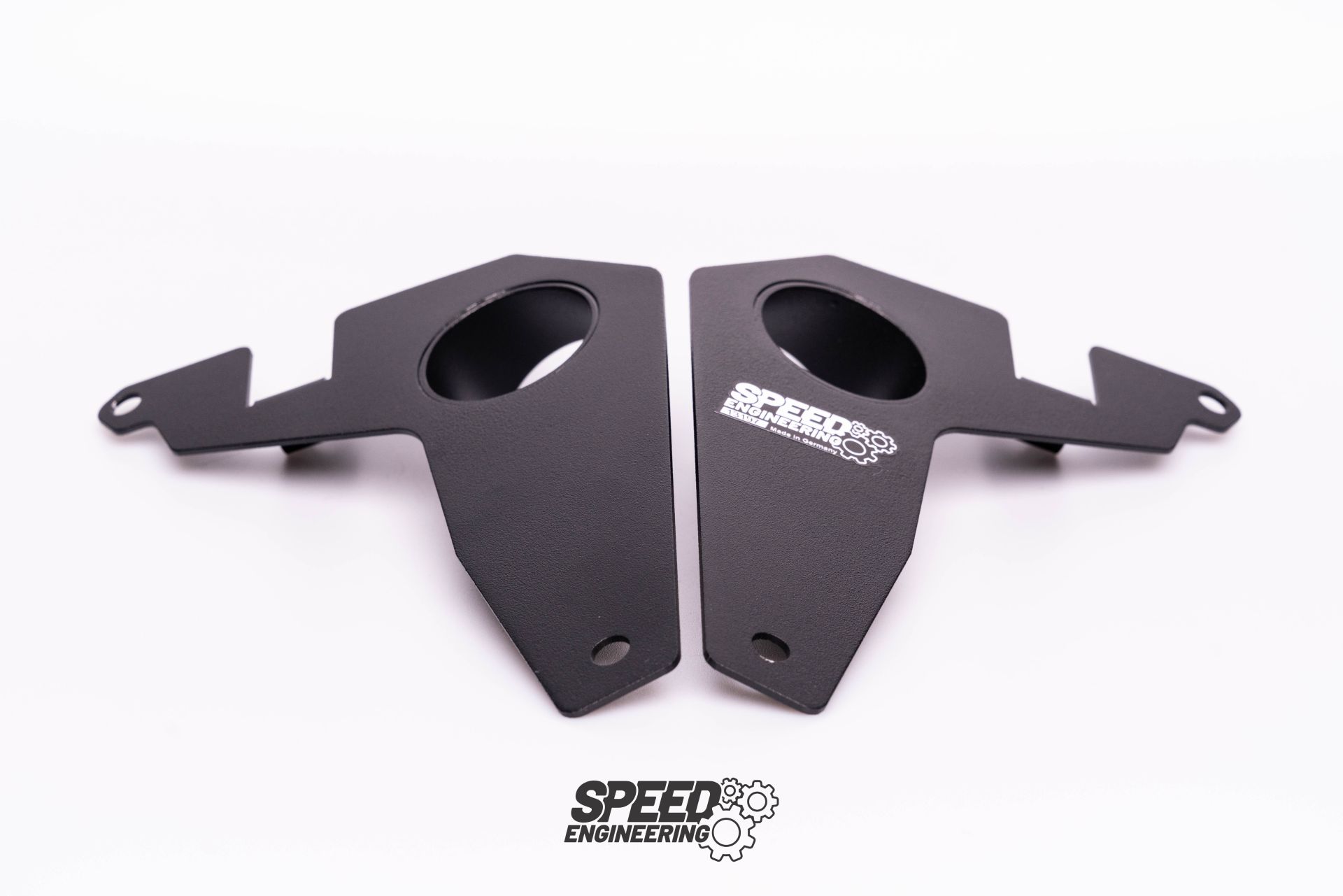 Wlot kanału powietrznego: Aby powietrze mogło przedostać się do otworu wentylacyjnego hamulców, niezbędny jest odpowiedni wlot. Modele E88 i E82 z pakietem M Sport posiadają już fabrycznie kanały wlotowe w przednim zderzaku, ale kończą się one pośrodku nadkola. Aby zapobiec niekontrolowanemu wirowaniu powietrza w nadkolu, opracowaliśmy nowy kanał, który dokładnie zastępuje kanał OEM i łączy się z naszą płytą nośną za pomocą przyłącza węża. Wylot kanału powietrznego (płyta kotwiąca): Wykorzystujemy kanałowanie przepływu powietrza do środka tarczy hamulcowej, aby wykorzystać efekt turbiny do chłodzenia wewnętrznego. Strumień powietrza jest kierowany na tarczę pod określonym kątem, co zmniejsza straty dyspersyjne i maksymalizuje wydajność dostępnej objętości powietrza. Zastosowanie aluminium malowanego proszkowo sprawia, że element jest wystarczająco wytrzymały, a jednocześnie lekki i trwały.