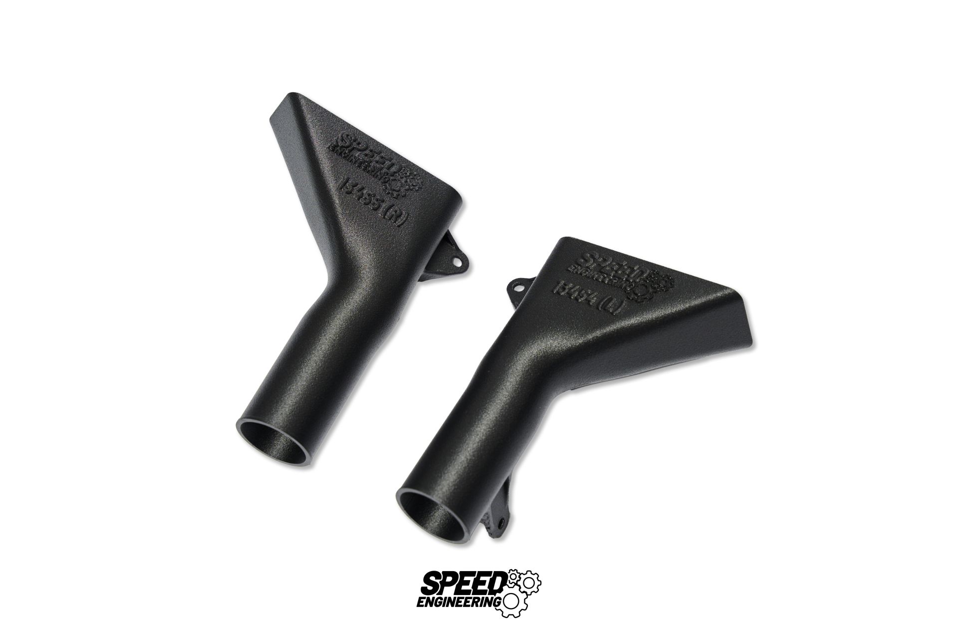 Wlot kanału powietrznego: Aby powietrze mogło dotrzeć do wylotu kanału chłodzącego hamulce, niezbędny jest odpowiedni wlot. W Golfie 7 czy Sedanie Leonie Cuprze 5F nie jest to takie proste. Wykorzystujemy każdą dostępną przestrzeń za zderzakiem, co nie pozostawia miejsca na dodatkowy kanał bez większych modyfikacji. Jednak wszystkie pojazdy, niezależnie od poziomu wyposażenia i skrzyni biegów manualnej czy DSG, mają jedną wspólną cechę: odpowiednie miejsce pod podwoziem. Pozwala nam to skutecznie przechwytywać przepływ powietrza, nawet jeśli nie znajdujemy się w najniższym punkcie. Nasz kanał jest mocowany trzema śrubami i łączy się z płytą nośną za pomocą przewodu powietrza. Ważne: należy starannie przemyśleć przebieg przewodu, ponieważ częste manewry kierownicą, w tym pełny skręt, mogą ostatecznie doprowadzić do ocierania się przewodu. Wylot kanału powietrznego: Wykorzystujemy kanałowanie przepływu powietrza do środka tarczy hamulcowej, aby wykorzystać efekt turbiny do chłodzenia wewnętrznego. Strumień powietrza jest kierowany na tarczę pod określonym kątem, aby zminimalizować straty ciepła i zmaksymalizować wydajność dostępnego powietrza. Lekka konstrukcja w połączeniu z malowanym proszkowo aluminium sprawia, że element jest wystarczająco wytrzymały, a jednocześnie lekki i trwały. Sworzeń kulowy wahacza znajduje się bardzo blisko rozgrzanej tarczy hamulcowej i z czasem ulega zużyciu. Dlatego ta płyta nośna posiada dodatkową osłonę łożyska, co wydłuża jego żywotność. Zawartość przesyłki: